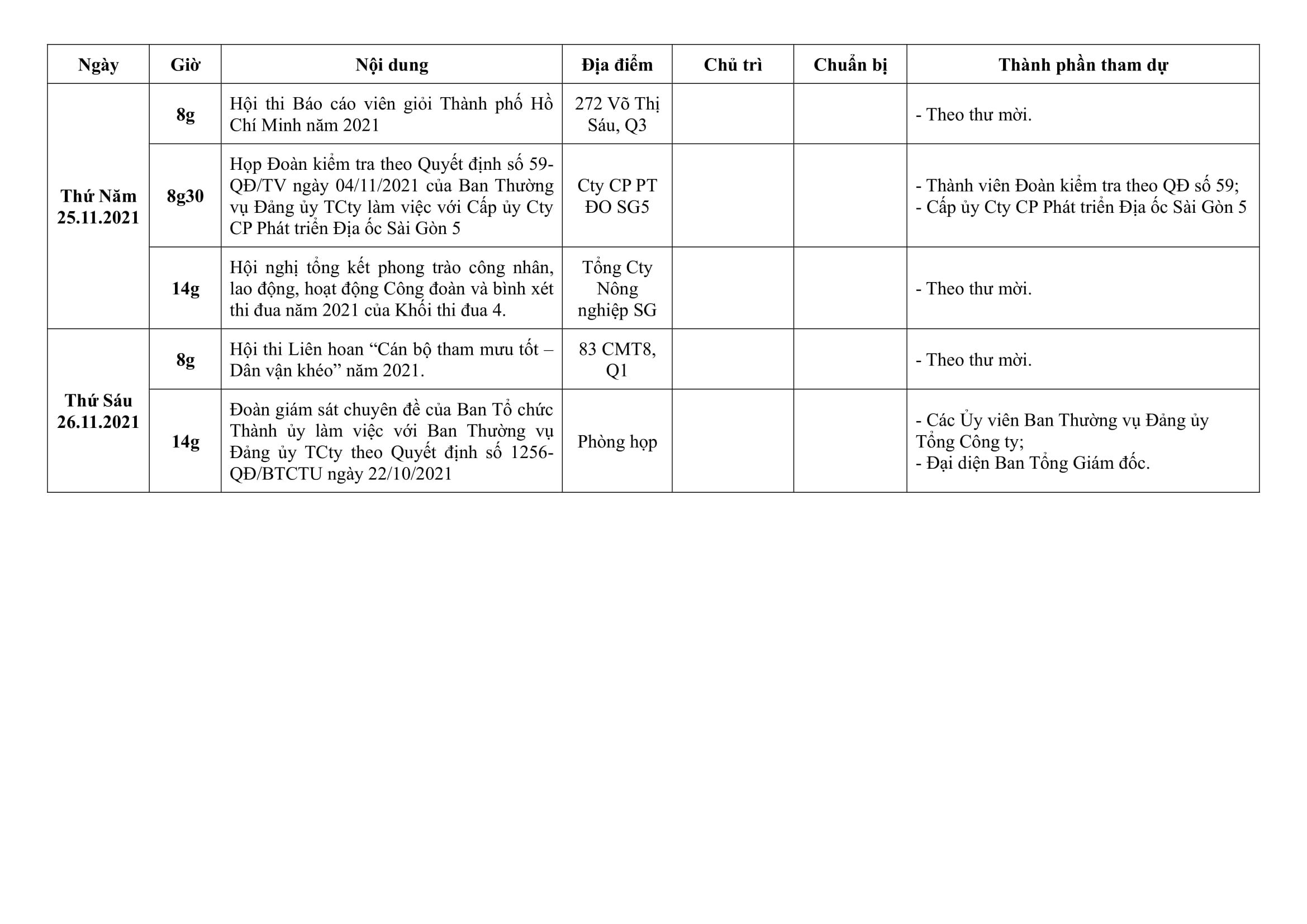 Lịch công tác tuần 48 (từ ngày 22/11/2021 đến ngày 26/11/2021)