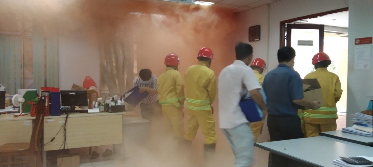 Tại buổi thực tập, với tình huống giả định cháy do sự cố chập điện, các cán bộ nhân viên Resco đã thực hiện báo cháy, sử dụng bình chữa cháy dập tắt đám cháy, di chuyển các nạn nhân bị ngạt khói ở mức độ nhẹ, di chuyển các thùng hồ sơ, tài liệu quan trọng và phối hợp với Công an phường đảm bảo an ninh trật tự tại hiện trường.
